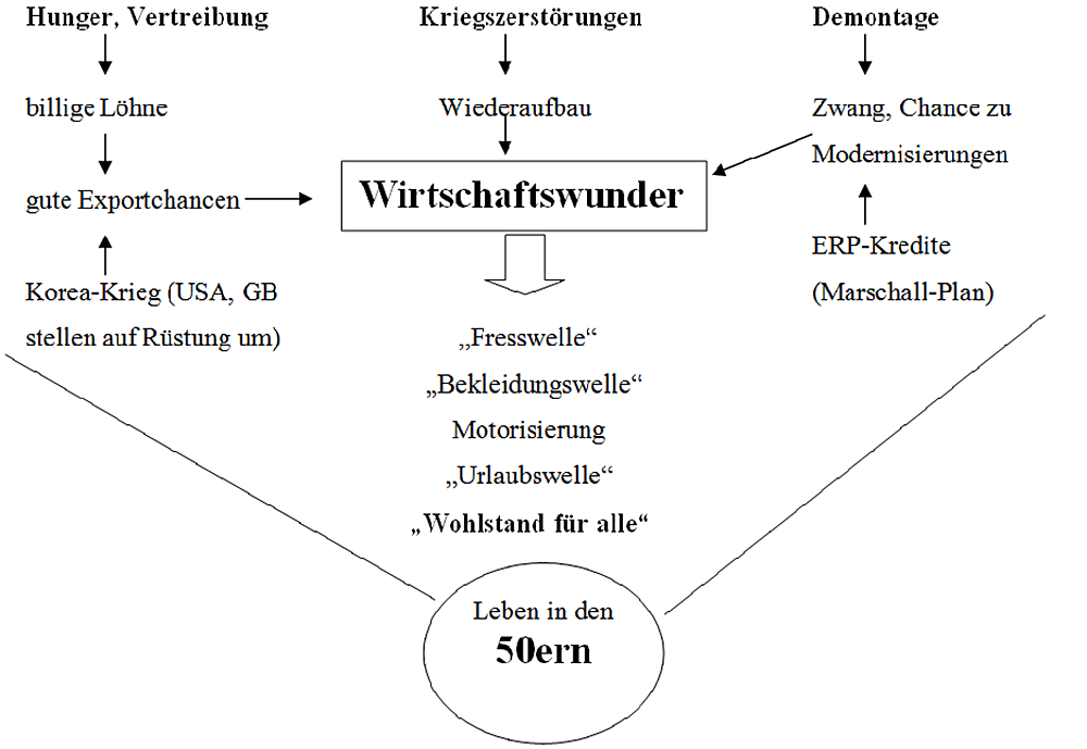 Deutsch: Tafelbild zur Doppelstunde "Leben in den 50ern"