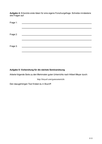 Deutsch: Erstes Aufgabenblatt einer Tutorenschulung