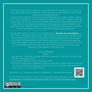 - Nimm kurz* Stellung dazu. (Entweder mündlich als Audio oder schriftlich als Text und schicke mir deine Gedanken zum Podcast, zur Theorie von Sen, zur Gerechtigkeit oder was dir beim Hören sonst so in den Sinn gekommen ist.)