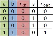 Deutsch: Additionstabelle mit carry_in = 0
