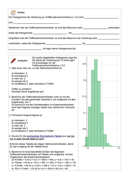 Arbeitsblatt zur Arbeit mit dem Experimentierkasten zur Binomialverteilung