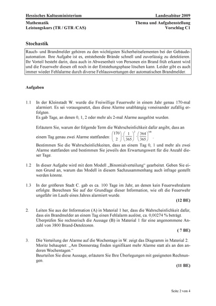 Abituraufgabe 2009 / Hessen / Stochastik |