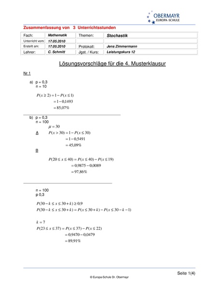 Lösung vierte Musterklausur |