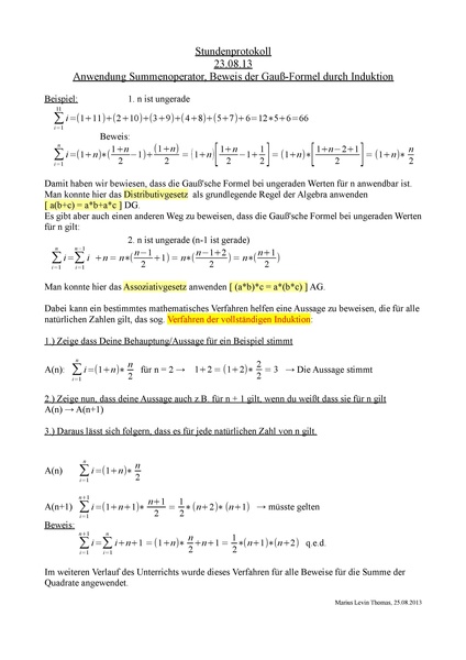 Stundenprotokoll zur vollständigen Induktion |