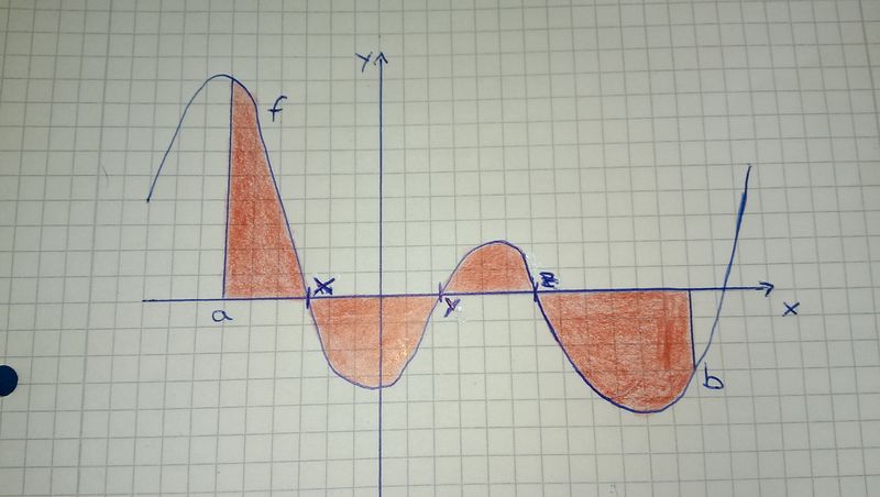Deutsch: Beispiel: Flächeninhalt der Flächen zwischen x-Achse und Funktionsgraph