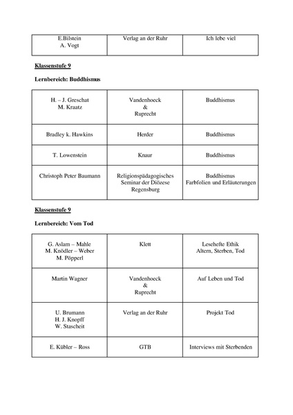 Literaturliste zum neuen Sächsischen Ethiklehrplan.