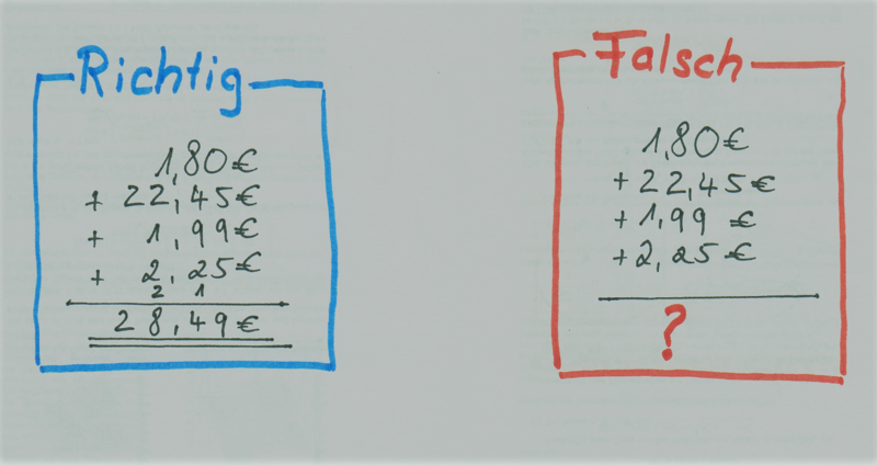 Deutsch: Beispiel zum schriftlichen Addieren mit Kommazahlen