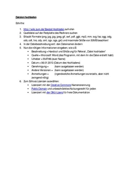 | aktuell | 11:36, 6. Jun. 2017 | 2.479 × 3.504 (7 KB) | Unknown user (Diskussion) | {{Information |Beschreibung = Handout und Erklärung für Referat "Datei Hochladen" |Quelle = Microsoft Word |Urheber = MxFr96 |Datum = 06.01.2013 |Genehmigung = |Andere Versionen = |Anmerkungen = }} |