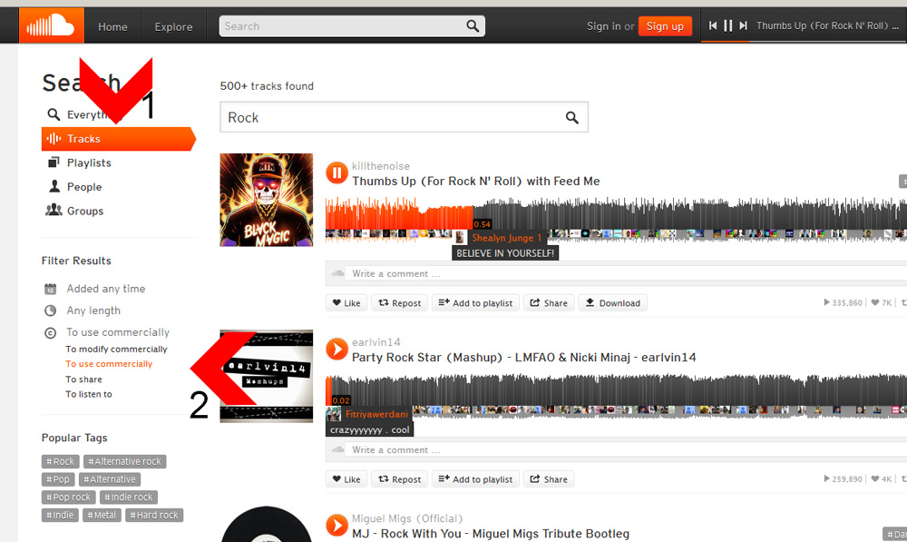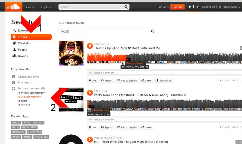 Soundcloud Suchfeld mit Filter für CC Lizenzen