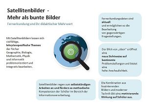In Satellitenbildern stecken Informationen über den Zustand und die Entwicklung der Vegetation. Daher sind Satellitenbilder für den Biologieunterricht, vor allem im Bereich der Ökologie, sehr interessant. Phänomene, wie der Einzug des Frühlings in Europa, der Zustand von Wald- oder Gewässerökosystemen, sowie Veränderungen der Umwelt durch den Menschen können anhand von Satellitenbildern anschaulich analysiert werden.