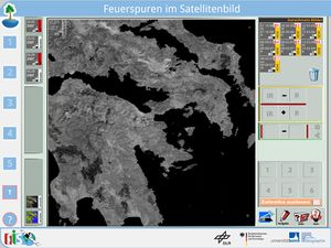 Am konkreten Beispiel der verheerenden Waldbrände in Griechenland 2007 setzen sich die Schülerinnen und Schüler mit den Ursachen und Folgen von Eingriffen in geoökologische Kreisläufe auseinander. Sie schlüpfen in die Rolle eines Beraters, der für die EU-Kommission die Entwicklung der Vegetation nach der Feuerkatastrophe analysieren soll. Zu diesem Zweck setzen die Schülerinnen und Schüler Satellitenbilder ein. Zunächst setzen sie sich mit den verschiedenen Spektralkanälen eines optischen Satelliten auseinander und berechnen einen Vegetationsindex (NDVI), der ihnen Aufschluss über die Vitalität der Vegetation gibt. Zuletzt wird mit mehreren NDVI-Bildern eine Zeitreihe aufgebaut und analysiert.